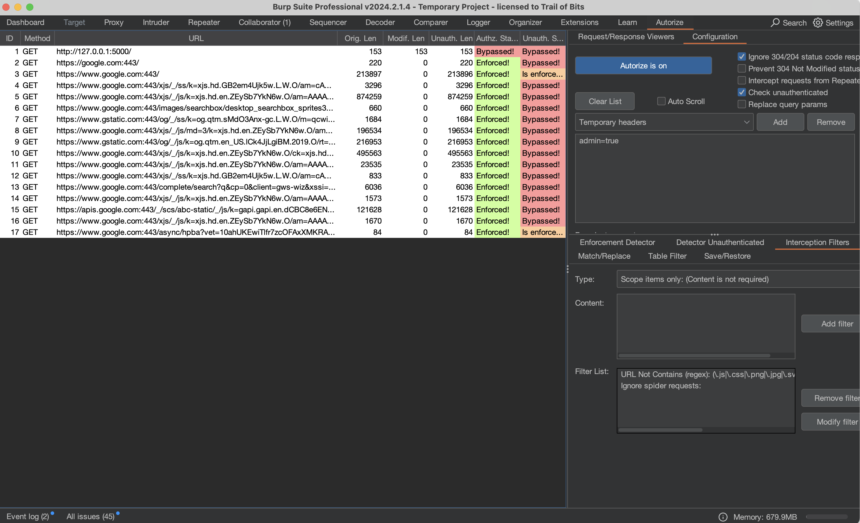 OPTIONSrequests and other unnecessary requests from an authorization testing perspective. - Always adjust the Enforcement Detector and Detector Unauthenticated functionalities accordingly to avoid missing bugs.