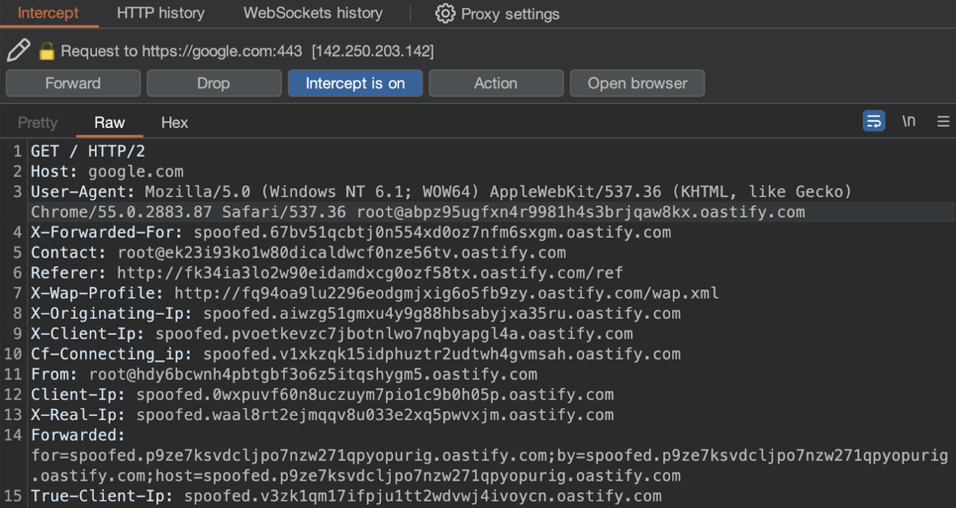 The Collaborator Everywhere extension adds noninvasive headers designed to reveal back-end systems by triggering pingbacks to Burp Collaborator. You can also detect potential IP spoofing when the web application returns the potentially real IP address based on the user-controlled header. However, the added headers may interfere with the normal functionality of the web application. So you don’t need to have the extension enabled all the time, but we recommend taking at least one shot in each corner of the application.