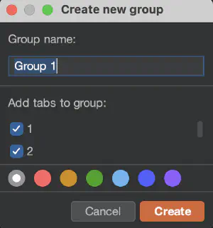 Then click on Create new group and select tabs (previously prepared requests) for the group: