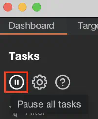 If you want to shut down all tasks (e.g., active Burp Scanner, Burp Intruder) in Burp, you generally can use this power button: