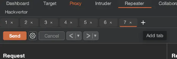 To group multiple requests in Burp Repeater, click the + sign and select Add tab: